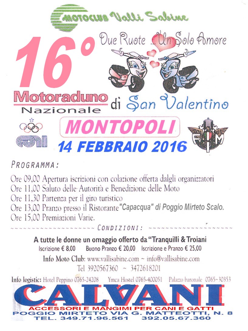 Motoraduno S.Valentino 14-febbraio-2016 Montopoli di Sabina Posted: 09 Feb 2016 08:19 AM PST |