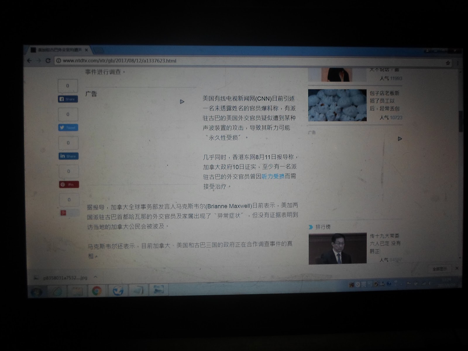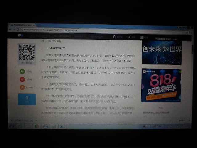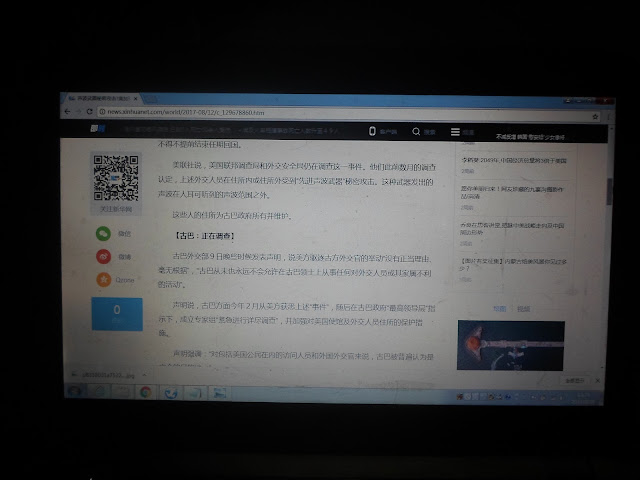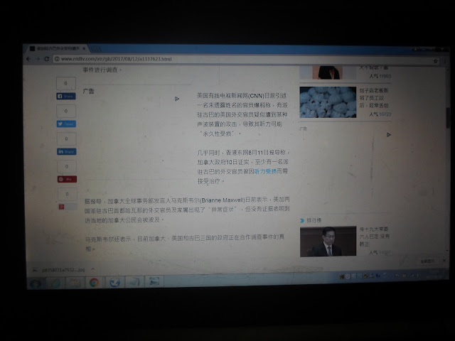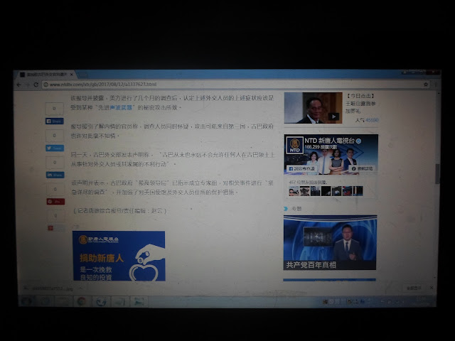 下面是我在2017年8月28日13时3分左右我用数码相机拍摄的新唐人网<<美加驻古巴外交官均遭声波武器暗算 三国联手调查>>一文网文截图
