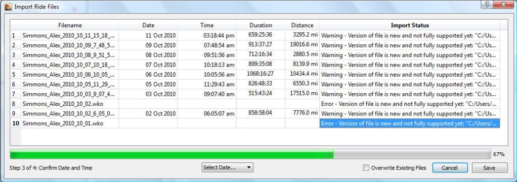 >> OK I installed that and tried to import some WKO+ 3.0 files (my own)