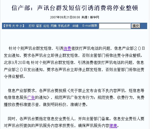 信产部要严整声讯台