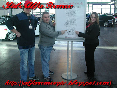 Noi altri, dal di sotto del palco,siamo esplosi di gioia,tifo e supporto ed abbiamo gridato come un altro club,che erano in 10-12....Il gentile supporter alla presentazione, difatti, ci ha chiesto se siamo un club di soli "Alfisti" e noi abbiamo risposto con un "SI" cosi' perentorio e secco, molto "spartano" che ha subito replicato "Evviva sia il Quadrifoglio!!"