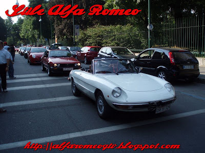 per approdare alla fin fine SFINITI e sinceramente SNERVATI a piazza del Castello, dove ad attenderci c'era si una bella coereografia ma quanta DISORGANIZZAZIONE in questa delicatissima frase dobbiamo proprio sottolinearlo ed evidenziarlo: davvero per un evento di questo calibro,che ripetiamo esser di tipo MONDIALE non vogliamo pensare cosa mai abbia potuto pensare un passato partecipante di SPETTACOLO SPORTIVO ad esempio,che è abituato a gestire numeri simili,essendo il piu' grande raduno Alfa Romeo d'Europa..