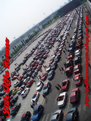 ..dove di li' a poco saremo raggiunti anche da Paolo e Francesca con la loro MiTo. Da notare come nel giro di neanche un'ora il piazzale della Fiera da vuoto, si riempirà a dismisura,sembrando addirittura "piccolo" per contenere l'enorme riversarsi di equipaggi con le loro relative Alfa Romeo..