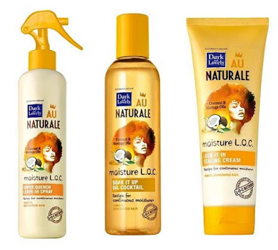 Dark and Lovely Au Naturale L.O.C. Super Quench Leave-In Spray, Soak It Up Oil Cocktail, and Lock It In Sealing Cream, the other day, and decided to give it a try. I have been rocking my natural hair for almost four years now and have been using the