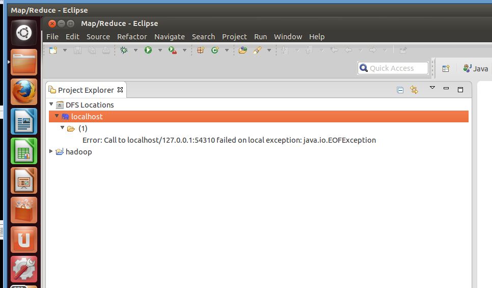 8. When tried to see DLS locations I am getting error "Error:call to localhost/127.0.0.1:54311 failed on local exception:java.io.EOFException"
