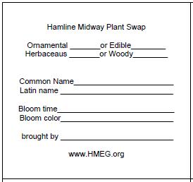 Hamline Midway Plant Swap! Have you started collecting some plant divisions and seeds for trade? To facilitate swapping, we have a pre-made label for you. Try to fill out as much as possible, but its OK if there is missing information.