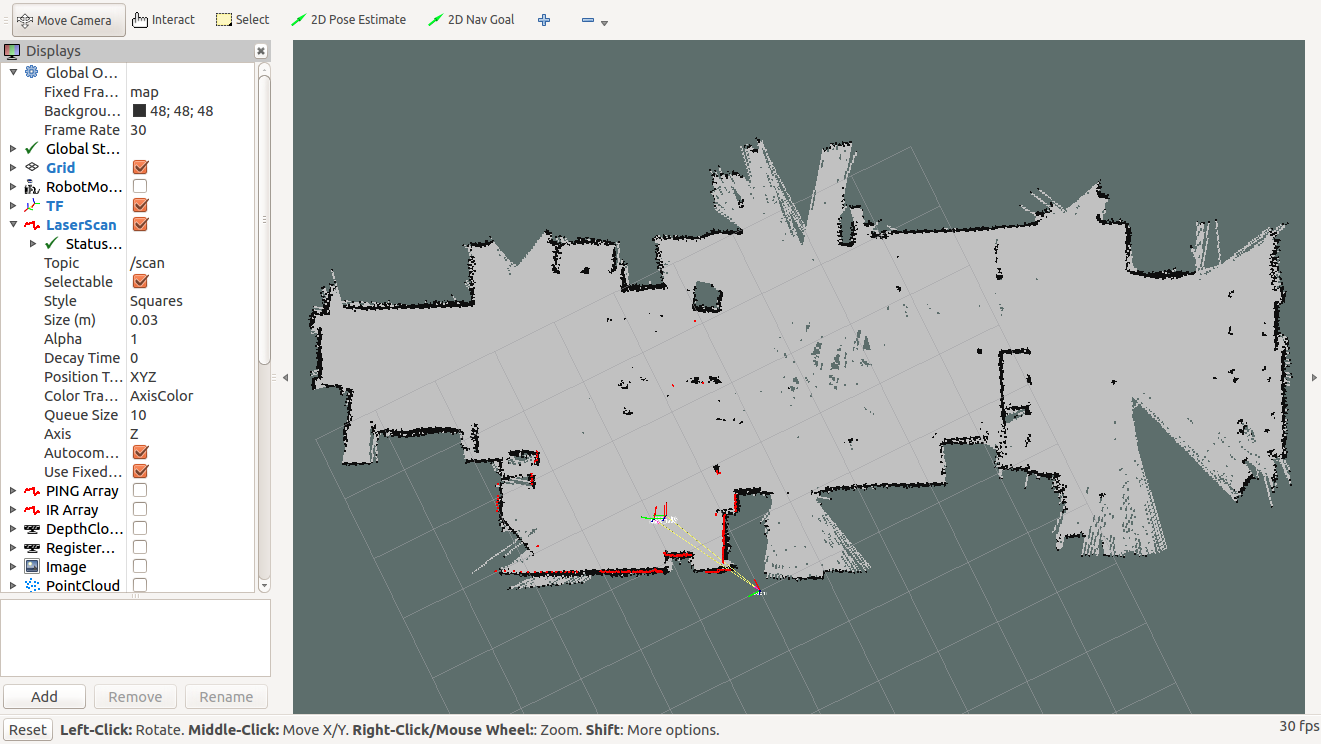 Can anyone point me to what I might be doing wrong that is causing this?As you can see it creates a large number of points outside of the walls of the room, which confuses the mapping process.