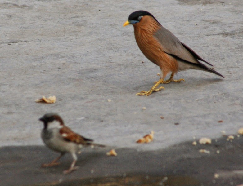 birds like sparrow, myna, brahminy myna, dove, blue rock pigeon, wood pigeons,