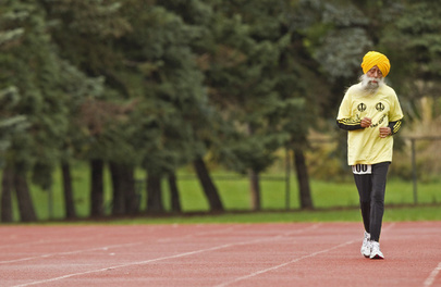 His trainer points to a bone density test done last year when the runner was 99. Singh’s left leg was found to have a density of a 35-year-old; his right leg had that of a 25-year-old.