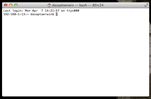 3. Run the "terminal' window. The icon should be in your "Utility" program group. The one in the middle.