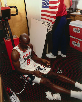 | Think you'd ever catch Kobe sitting on the ground, lacing his own sneakers? |