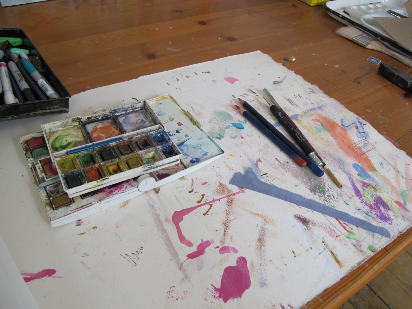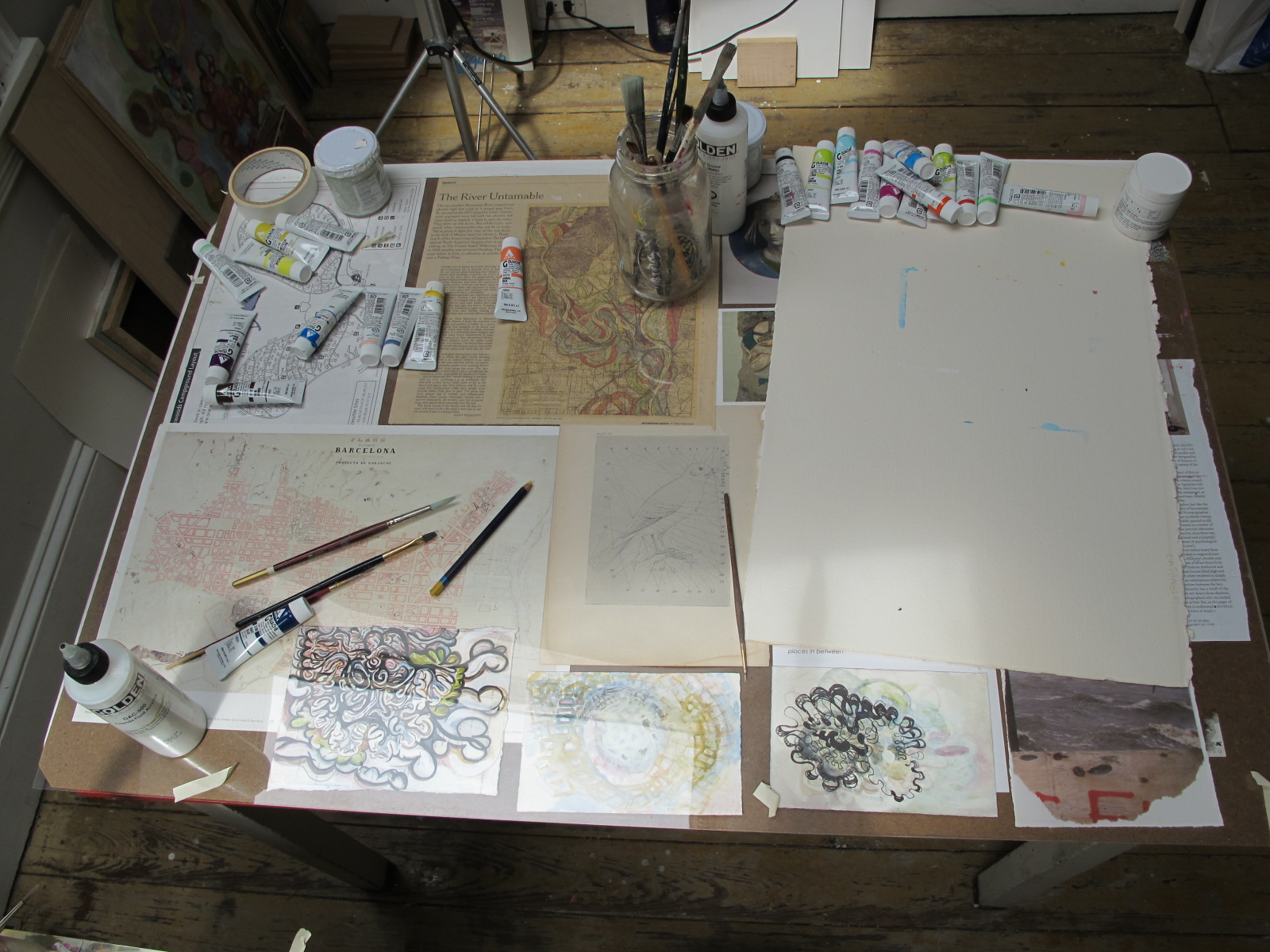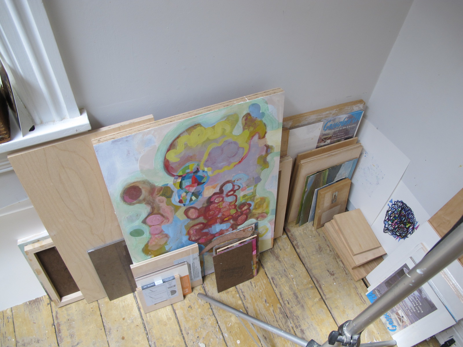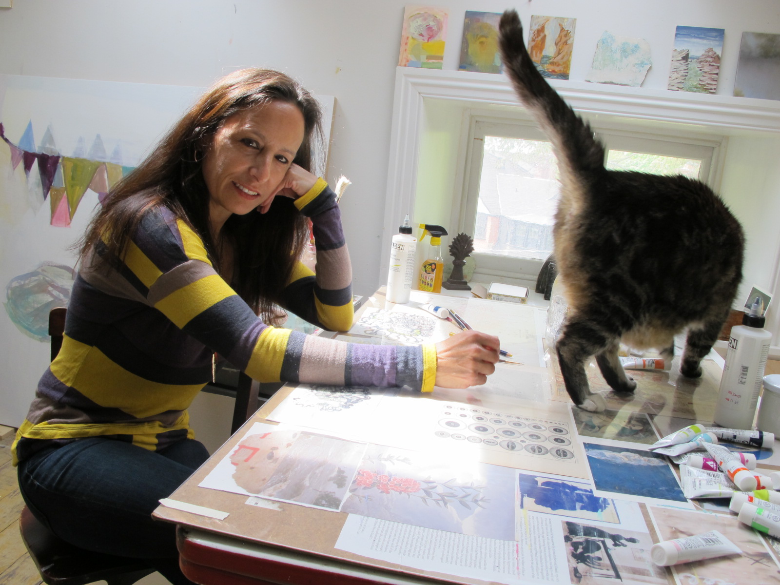 home tour of Phildaelphia painter Bonnie Levinthal's perfectly appointed and gracious Chestnut Hill home. Tucked away on the third floor is her painting studio, the jewel in the crown if you ask me in a home chock full of jewels. Not only because of its glorious light, but because it reminds you of a European pied de terre, simple, humble, and utterly perfect for the serious work of artists. As a fine art photographer specializing in large scale silver portraits, I have always envied my painter friends toiling away in daylight while I slogged it out in windowless darkness. Ok, the darkroom red light is pretty captivating as is all the running water, but ten hours in a darkroom suspends time, oddly, while ten hours in a painters studio allows the unfolding of light, how it moves through the day, changing color and intensity, its own kind of miracle. Bonnie's work has always been (among other things sensual and psychological) a treatise on light. Light as atmosphere, light as form, light transforming land, and light illuminating psychological vagaries of the mind. You can see more of Bonnie's work and follow her log by clicking