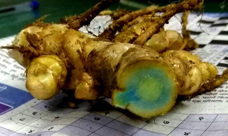 Saroj ji, I think your plant is Curcuma caesia, having a deep violet-red patch which runs through the length of the lamina is characteristic for this sp. Thanks Nayan.