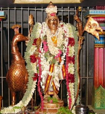 வலதுபுறம் இக்கோவிலில் உள்ள உற்சவ மூர்த்தியான முருகப்பெருமான்