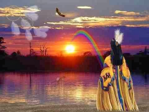 All my Relatives, it's sun dancing with the New Moon, the Holy Ghost Walk. I send my love to you in the sacred blue (seas of you and me), we are going now to show the "POW". We will dance and sing and bring in the humming brings, the sacred drum will lead us on the show. Now it's time to lead my holy stillness (spirit within) achieve the locomotion I need to find my waves. Inside I sing. I will lead you deers in to where there is no fear, to walk upon the land as solemn men. Yet inside we shall shine divine, a lot of merry will chime, inside we will light the way in peaceful glee. And we will dance and sing in control of everything, because the soul will be let out to sing. I send my love to you, where there is such a fuse, where the sparkling dim will dew a dance. And we will share a tear and make it really reel, where the hairs and streams will find the winds. Come now, give a cheer, it's White Buffalo Calf Woman near, to hold us in the hands of God's love. We beat a dance and song to bring in - out to the clouds, to dance a spark of light inside of you. And with this beating drum, Holiness David on the Run. We are dancing to find the shooting stars (Holiness David Running Eagle Shooting Star drums for us to day). And we shall share a dance and sing and make romance because we remembered about our liberty. The soul inside takes us for a ride and now it's time to keep all clean. I bless my Great Spirit wear (sacred buffalo robe, four directions in rainbow colors), my soul I must tear, the white buffalo (prayer cloth of many colors) around my shoulders near. We are the dreaming suns, upon the holy rungs (stepping stones to the Great Spirit of all my Relatives, relativity in the fields, we deal). We are taking hold of everything. And with this said today, let us be led this way, the holy ghost inside is leading a parade. We are a journey of love, going over the doves, where they will know the peaceful waves. And inside of us, where we lance (cut) and dust (diamonds) (brilliant shining lights), the whole cosmic world will be displayed. Shine, shine inside my Sun Dancer. Shine shine the Morning Star (eight sacred directions, four colors inside, four colors outside, where I stand I stream, all the colors of the beams. I bow and bless the sacred nine streams and four holy directions). Let me be the great pretender (I will try), and let my crazy light begin and cleanse up all this sin. I bless it clean. All the colors of the stream. All the colors of the dream, my hands to the winds. I hold you close today, to make us cheer a lovely wave. Heaven send us home, to make us live a loom. Together, I say Deer/Dear, I love your cheer. I let my hair down. I let it out like a clown. I beat with my feet. I feel like the sleet. And with all this, stones. I want to bury all my bones. Forgive the past, for I will know, the good red road will flow. Aho, aho, aho, my spirit blows. Aho, aho, aho my spirit really knows. Aho, aho, aho, make my soul glow. Ghost walking today, just another display of the Sacred clouds in the sky (Katchee Tope wha: “the Clouds that Dance Ceremony”), sharing all the colors of the waking wise. It's heavenly tunes. We are here to know the blue, true blue, true blue, relatives we knew. Come on home and shine with me. It's time to be heavenly..... White Buffalo Calf Woman sings and Holiness David Running Eagle Shooting Star drums for all the Sacred Suns, Elders of the Rainbow Clan, you and you and you and you and you and you and me too!