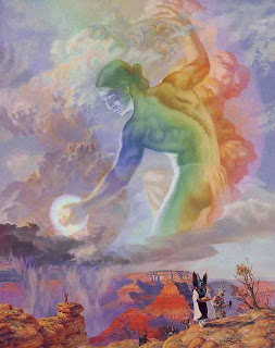 We are making a holy ghost in you. We are making a call out, a shout out for the blue. And every soul that dances inside of your heart, sings hallelujah, we did our part. There is much to learn inside of every single child you see/sea, each a hand in the land of our destiny. I bless the shores, the open windows, the dreams that fly free from me to yee/you, all over the trees. We are ghost dancing in the breeze. We are holy spirits, a grandeous of a need (to cultivate love in the fields, the rainbow colored wheel). We are sent from heaven to shine down from this arc. We are sent to gift the glory of all we need to part, the waves of time. The waves of time, to share the window, the holy smoke knows, it's ghost walking that sacred sight today. It's a ghost walking, developing in all we say. I let my hair down. I send my frown. I let my tears go. And then I am holy smoke (breath of life). I forgive this world, to make it/'s fear all go away. I sing my heart in praise,  I sing for you, today. I know the glory of the waves that sing, to say it's love again. I take this breath for you, to know the sacred true, the waking of this ghost, the holiest the most. I am the true blue after you. I send my love out to every single clue. It's a mystery. A mystery,  a painting, a story come true. I send my love out to you ..... (Holiness David Running Eagle says, "but wait there is more!")
