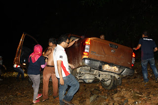 nyusruk disebuah parit. Beruntung mobil tidak tergelincir di jurang. Kami pun