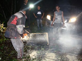 kemudian, harus kami hentikan lagi. Kali ini, kami dihadang oleh sebuah pohon