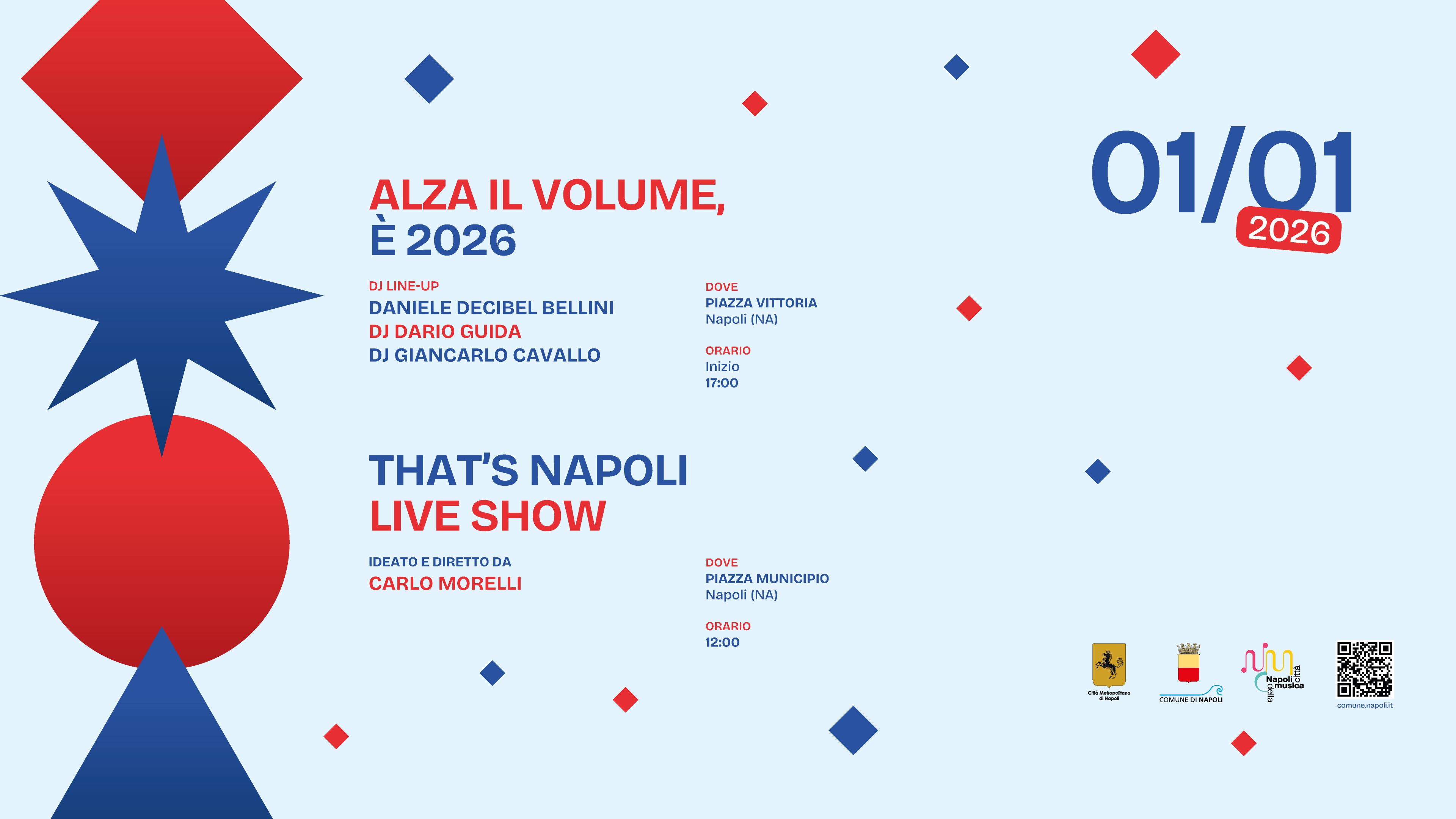 Giovedì 1°gennaio, alle ore 12:00 in Piazza Municipio, cittadini e turisti assisteranno a uno straordinario spettacolo musicale con 16 voci (soprani, mezzosoprani e tenori) e 7 musicisti, che proporranno coinvolgenti mash up tra grandi classici della canzone napoletana e hit internazionali con “Tammurriata Nera” e “Eye of the tiger” dei Survivor, “’O surdato innamorato” e “Roxanne” dei Police, “Comme facette mammeta” e “Hit the road Jack!” di Ray Charles, “’O Sarracino” e “I will survive” di Gloria Gaynor, “Reginella”, “I want to break free” dei Queen e “Dancing Queen” degli Abba, “Luna rossa” e “Mas que nada” di Sergio Mendes.