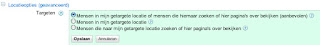 Ten eerste hebben we de opties in andere bewoordingen uitgedrukt om ze duidelijker te maken. De optie voor geavanceerde targeting op locatie zag er als volgt uit (Engelstalig voorbeeld):