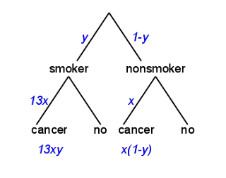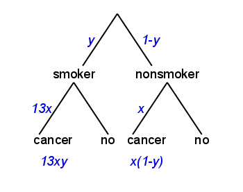 proportional to 13xy, and the number of nonsmokers who get lung cancer