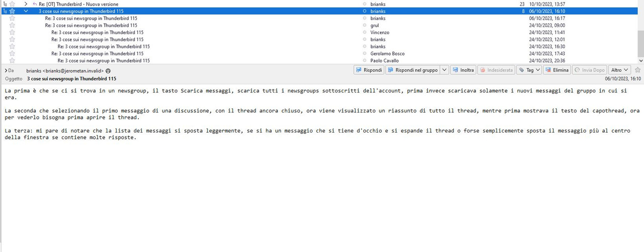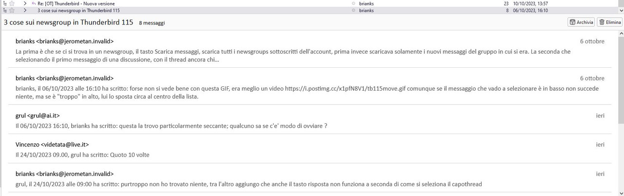 > Se ho capito bene, il problema è di Thunderbird. Se in un thread