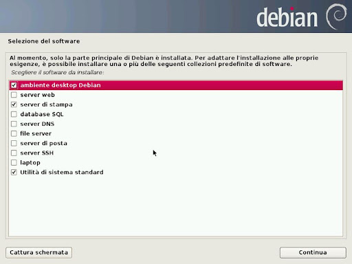 originale ma installata senza KDE e altri set di pacchetti inutili per