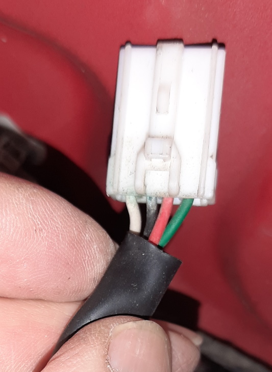 Ha 4 pin a cui arrivano altrettanti fili: bianco, nero, rosso, e verde. Il verde sembra