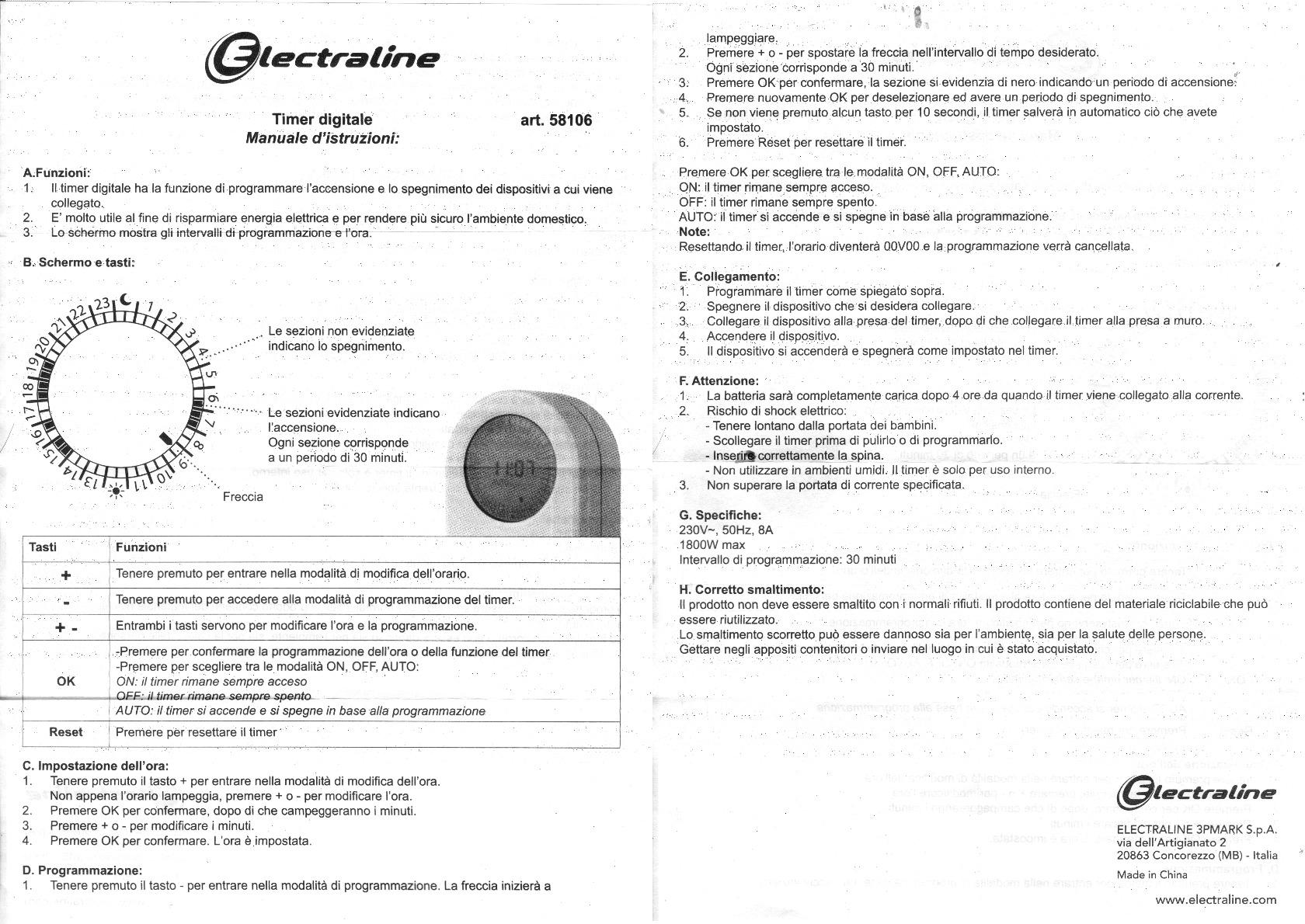 inserire nella presa->tenere premuto il tasto "+" per impostare l'ora