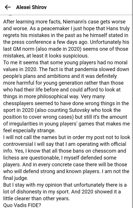 successivo al ritiro di Carlsen, ma le sue stigmatizzazioni sul