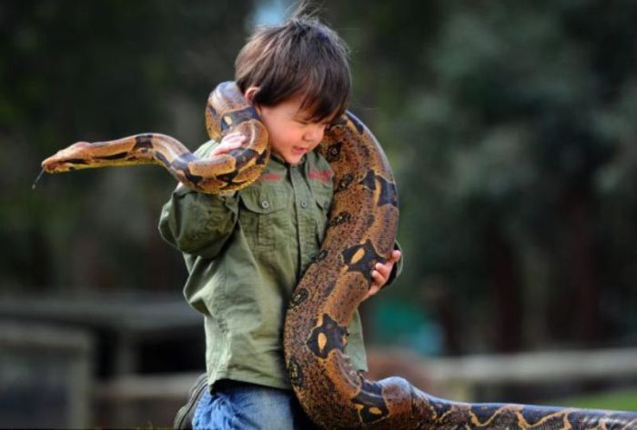 In Australia, 2-year-old boy Charlie is good friend of boa constrictor Pablo. Charlie comes from three generations of carers who own and the Ballarat Wildlife in Victoria,