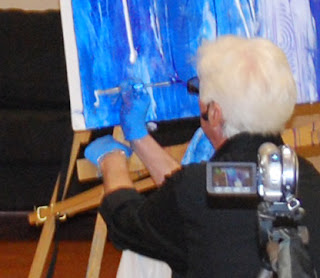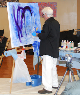 After taking comments and questions, as a finale I squeezed sweeping lines of white and blue from their tubes (one fan called this my signature)... I titled the painting "Tango," afterall we wer at DF Dance Studio... Watch for the video.
