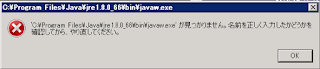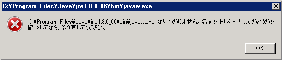 > javaw.exeが見つかりません。といったメッセージが表示され実行できなくなってしまいました。