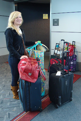 Also below is the cutest bag lady you will ever see...she's watching our colorful bag collection in O-town while the rest of us use the facilities after the long flight home.