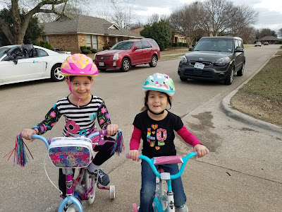 The weather is finally warming up but not TOO hot yet, so we're trying to enjoy playing outside while we can. Abigail is getting better at riding her bike and can now ride all the way to the park.  A little more practice and then we can go check out the MANY awesome trails in Plano.