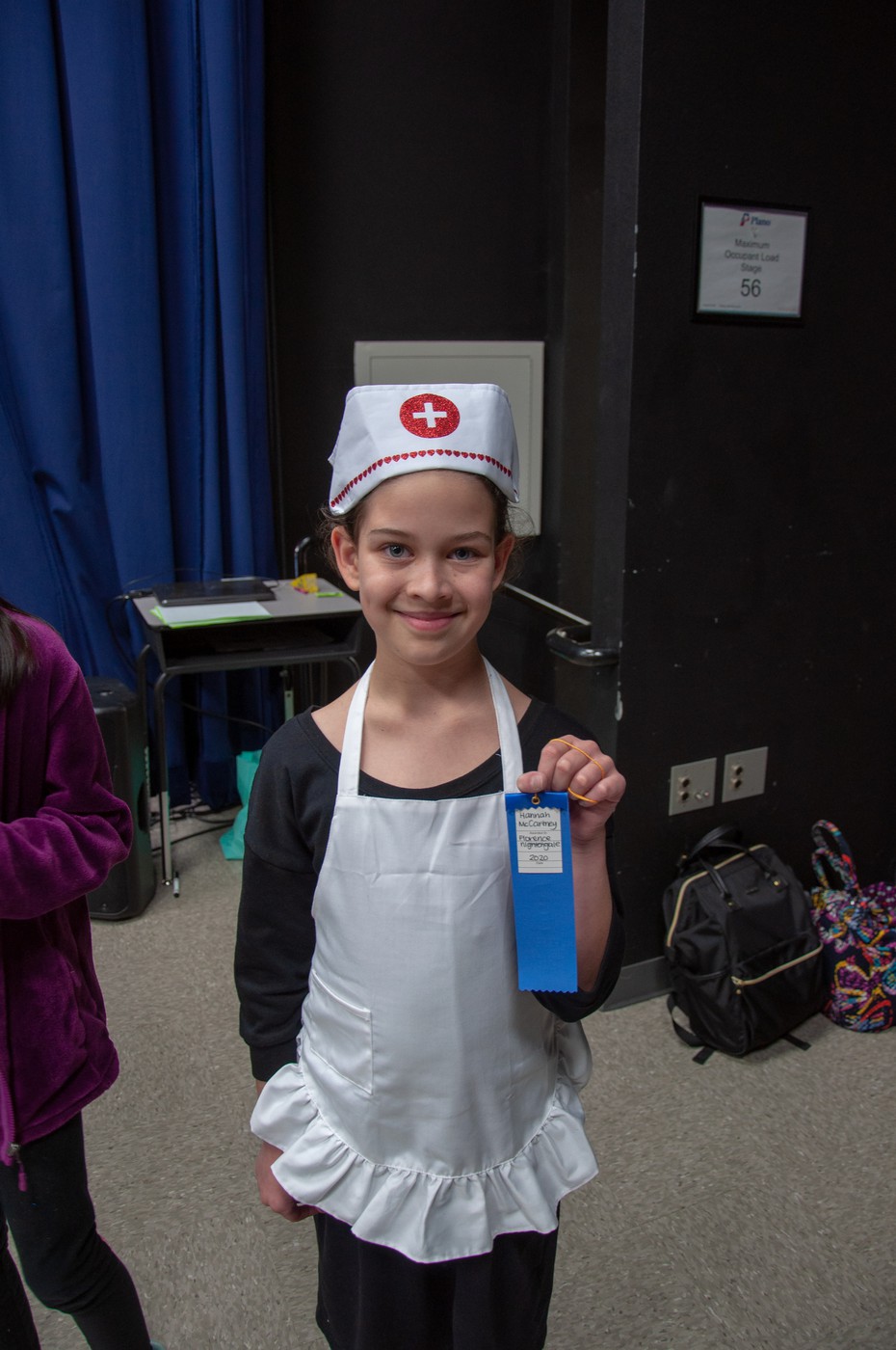 All 4th graders were required to participate in either the Science or History Fair this year. Hannah loves history so that's what she chose. She researched Florence Nightingale and learned tons of information. The students were given three choices of how to present their research: poster, power point presentation, or performance. Hannah chose to write a script and recite it for the judges. She did a great job and had lots of fun. She was the only one to participate in that category so she won 1st place in her division.