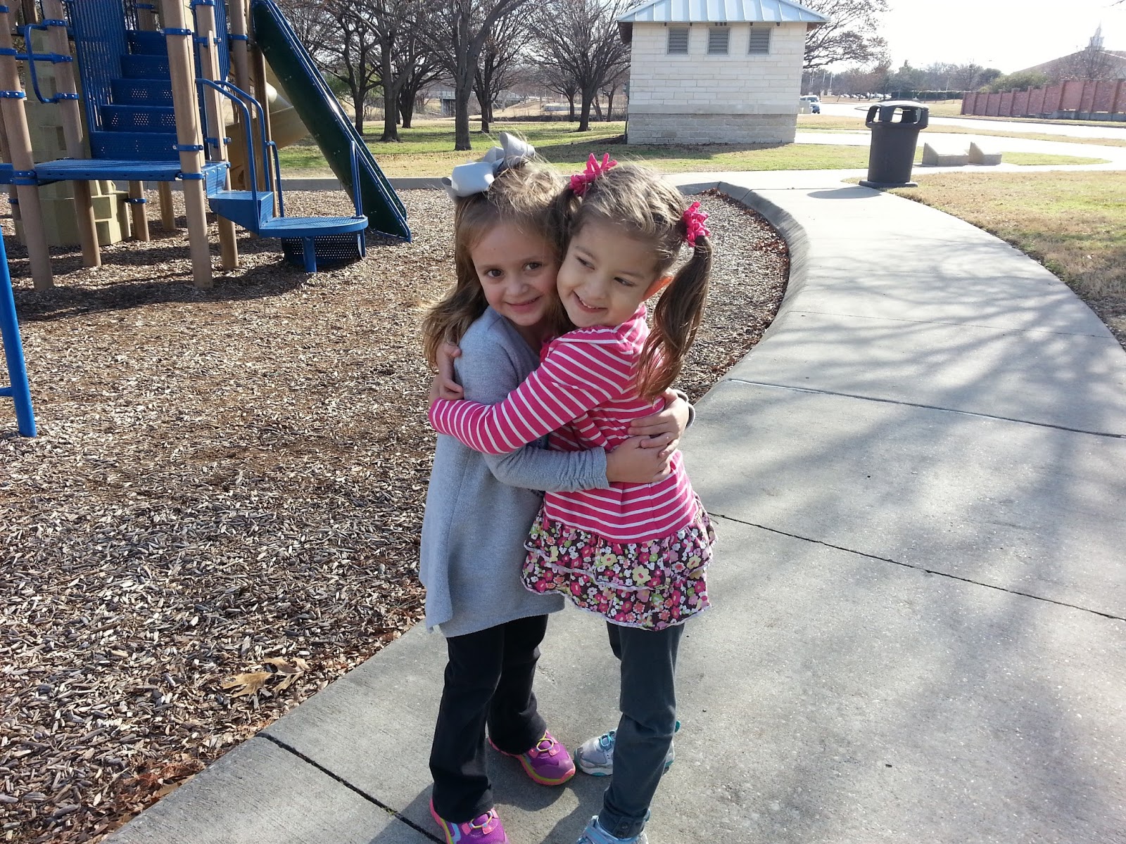 Despite our one afternoon of snow, there were many days of nice weather in January. We enjoyed being able to play outside and not freeze walking to and from school. Abigail and I met our friend Alexa at the park one morning. Alexa's mom and I met our freshman year at Baylor and have been friends ever since. So fun to watch our girls develop a friendship too!