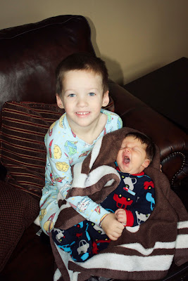 Things have been a little crazy around here lately. Not because of the baby, but because of the other kiddos. The twins have walking pneumonia and so there have been many sleepless nights. It's funny that Bentley sleeps all night long and we were losing sleep being up with the twins-lol. Hudson has had a cold as well and we are just grateful that Bentley has not gotten any of it. We have been trying to keep him separate and not let the kids kiss on him or anything.