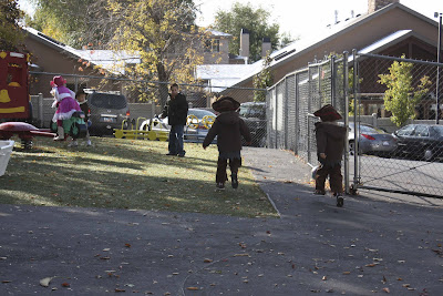 Alright, I have a ton of pics to post, so I am going to try and just do separate posts for all of them. This will be the first and either I will do more today or another one tomorrow. Sort of like a one a day thing. These are pics from the twins' party at school the Thursday before Halloween. They were thrilled to dress up in their pirate costumes that morning and even more thrilled to see mom, dad and Hudson at their school. They had so much fun. I think it got Hudson excited for his party the next day.
