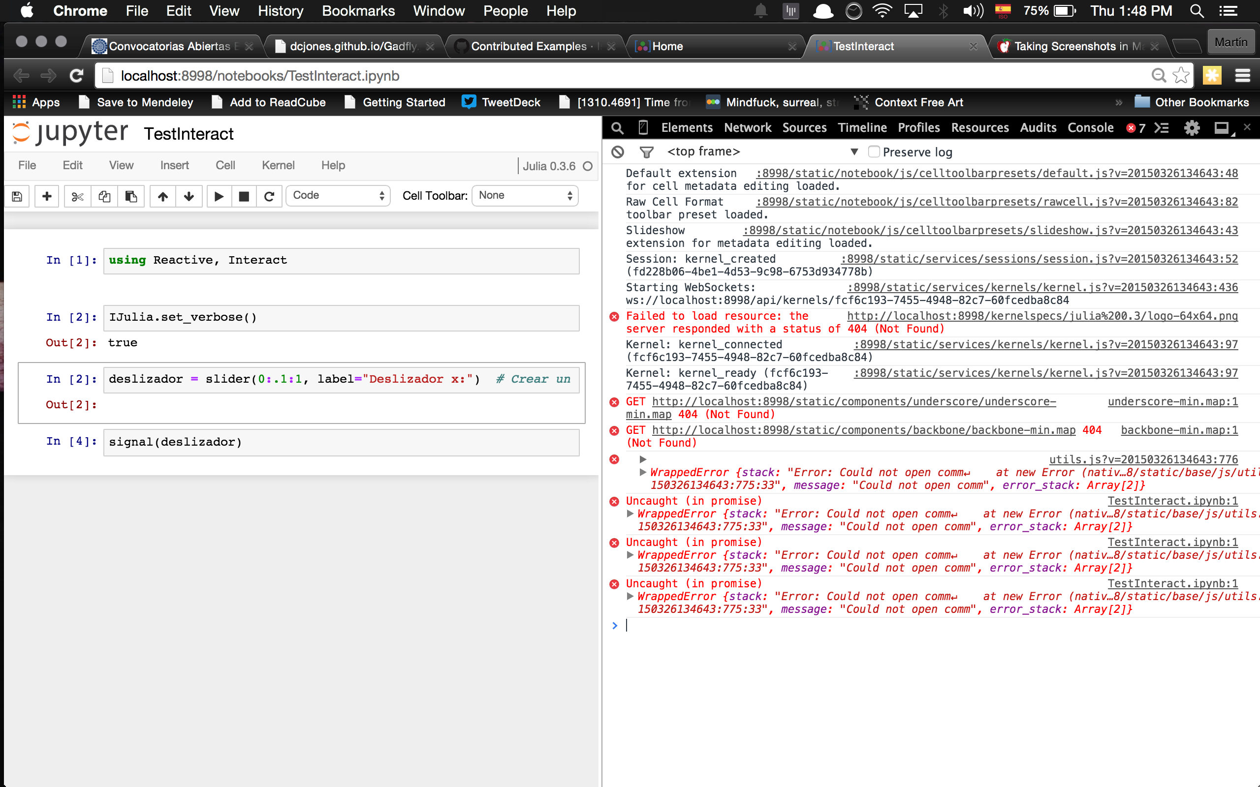 Maybe interact.jl is not in synch with recent breaking changes from Ipython.
