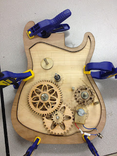 Update. After experimenting with different materials we went with 5/32" mdf, available from home depot. We had the home depot guy panel saw it into 24 x 20" pieces that fit on our laser cutter (Helix 60W). There is some sticky residue left on the laser bed, and it smells bad, but it's cheap and hard enough for gears and other moving parts.