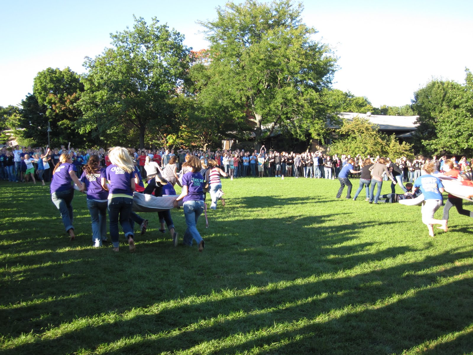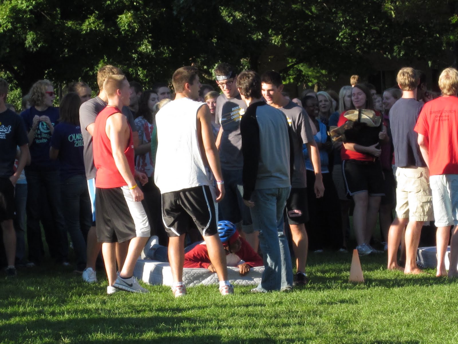 Tomorrow is Chaos Day!!! All the dorms compete in games against each other. So, this afternoon was Battle of the Bye! To compete each dorm had to carry a person on a mattress....six people carrying the mattress and one person on top. The guys carry it down, and switch with the girls who carry it back.
