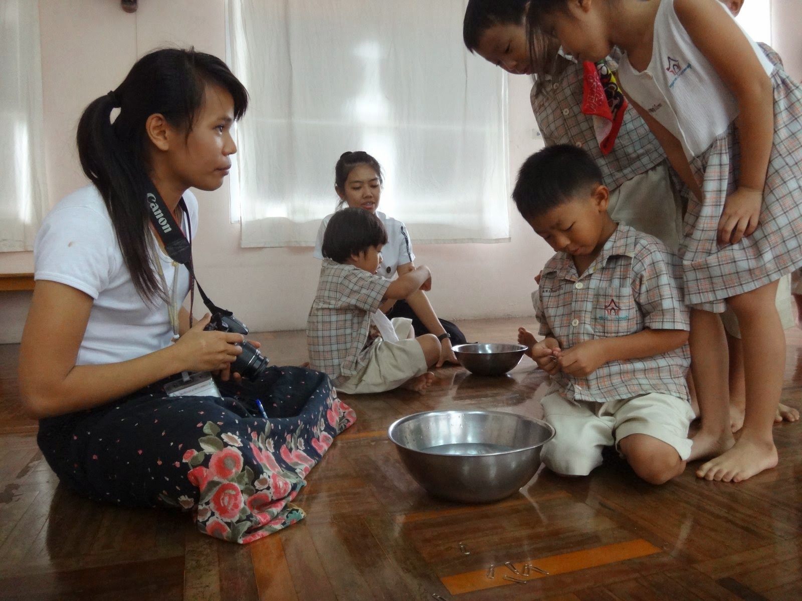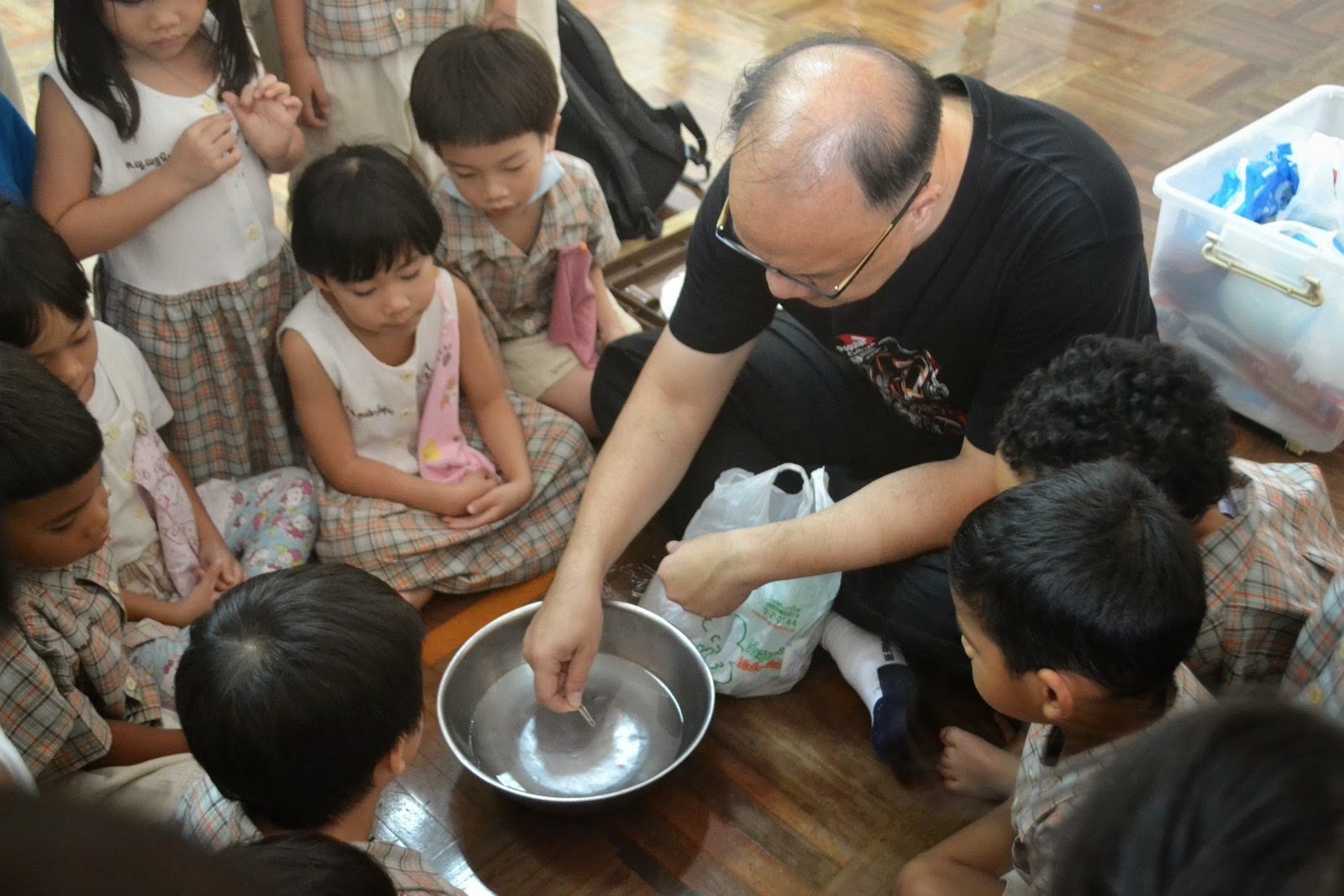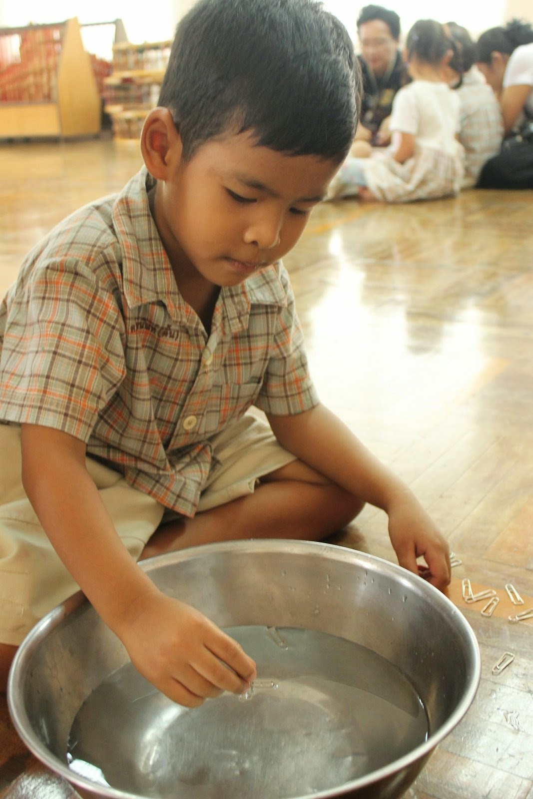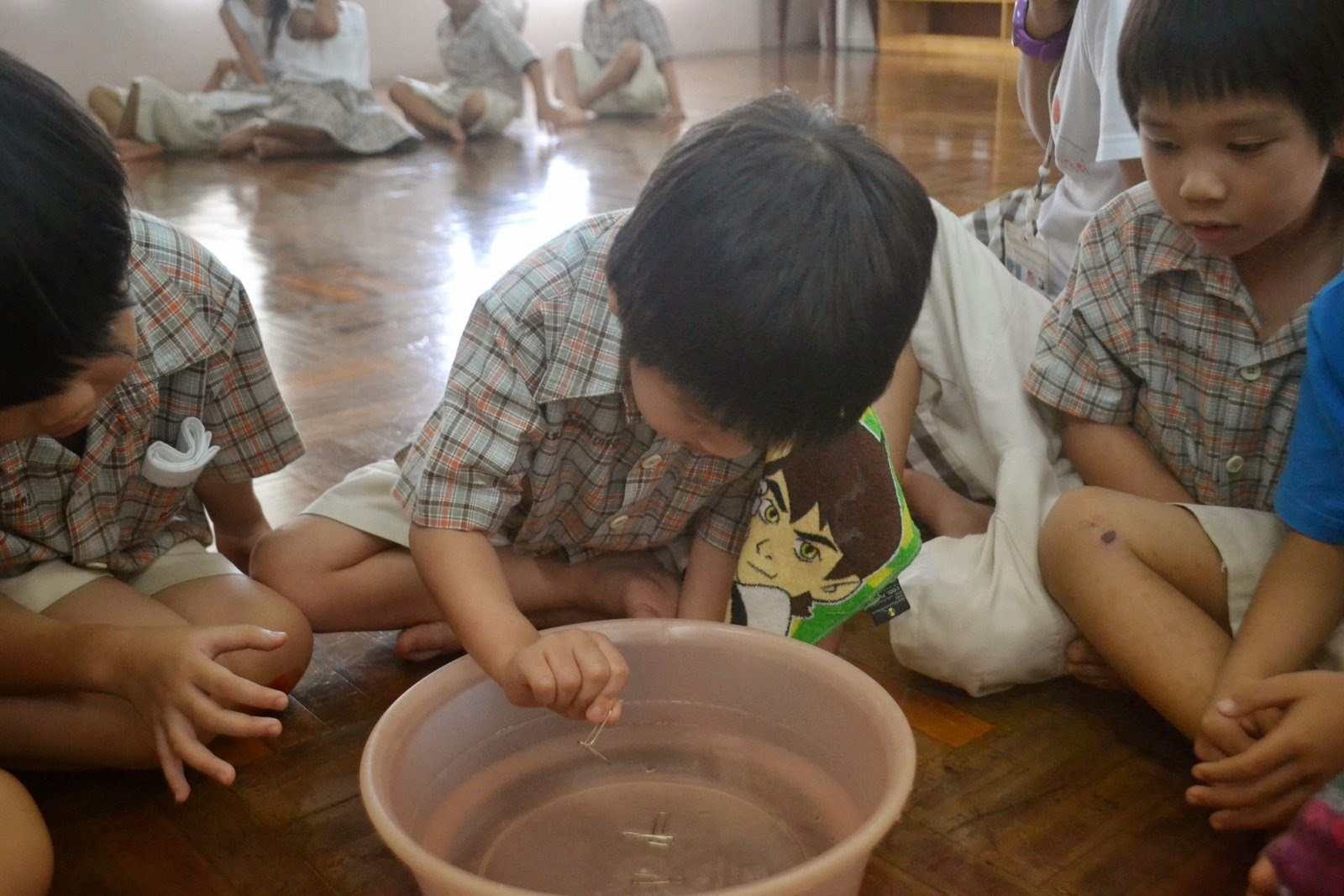 สำหรับเด็กๆอนุบาลสาม ผมสอนกลเรื่อง "เหล็กลอยน้ำ" โดยเอาคลิปหนีบกระดาษโลหะมาลอยที่ผิวน้ำให้เด็กๆดูแล้วให้เด็กๆทำกันเองครับ เด็กๆก็ตื่นเต้นกันมากเพราะปกติเขาจะเข้าใจว่าเหล็กต้องจมน้ำ แต่พอสามารถลอยได้ก็ชอบเล่นกันครับ วิธีทำก็ดังวิดีโอนี้ครับ: