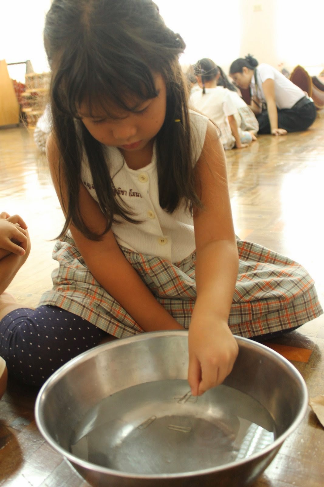 วันอังคารที่ผ่านมานี้ผมไปทำกิจกรรมวิทยาศาสตร์กับเด็กๆกลุ่มบ้านเรียนปฐมธรรมและอนุบาลบ้านพลอยภูมิครับ วันนี้สำหรับเด็กประถมเราได้คุยกันเรื่องปริมาณน้ำและอากาศบนโลกที่มีน้อยกว่าที่คาดเยอะ ได้คุยกันเรื่องดาวศุกร์และดาวอังคารที่ไม่มีน้ำเหลวๆแล้ว เด็กประถมต้นได้หัดใช้เทอร์โมมิเตอร์วัดอุณหภูมิ เด็กประถมปลายได้การบ้านไปวัดอุณหภูมิระหว่างสัปดาห์และคิดวิธีทำให้โรงอาหารมีอากาศเย็นๆ เด็กอนุบาลสามได้เล่น "เหล็กลอยน้ำ" ซึ่งก็คือวิธีวางคลิปหนีบกระดาษให้ลอยน้ำได้