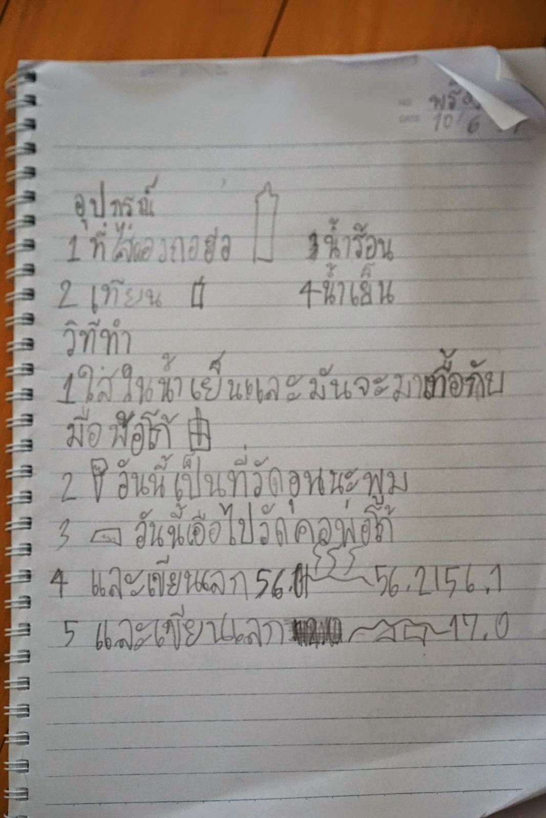 จากนั้นเด็กประถมต้นก็ได้ใช้เทอร์โมมิเตอร์วัดน้ำร้อน น้ำเย็น มือ น้ำใส่น้ำแข็ง และอื่นๆกันครับ
