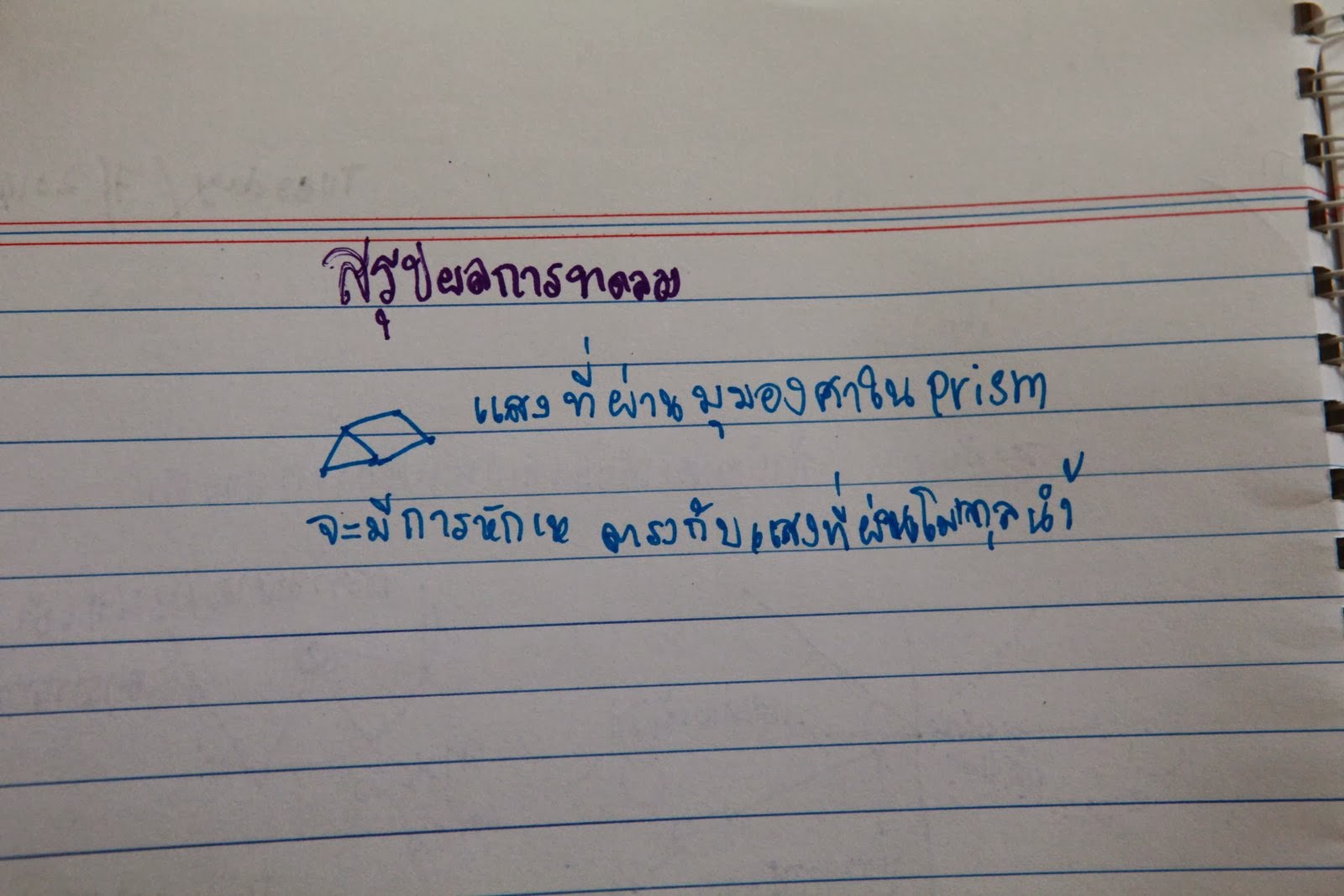 ปริซึมมาวางขวางแสง เราจะเห็นแสงที่วิ่งผ่านปริซึมเปลี่ยนทิศทางอย่างชัดเจนครับ