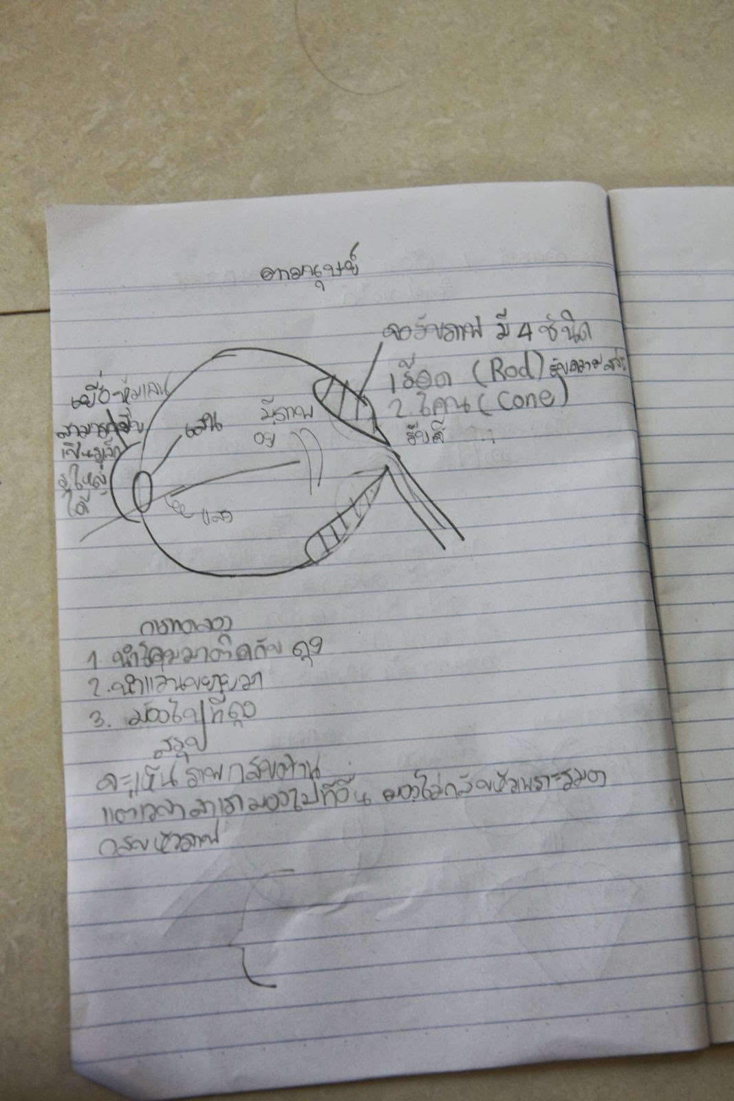 หลังจากเราดูวิดีโอเสร็จ เราก็คุยกันต่อเรื่องตาโดยผมวาดรูปคร่าวๆให้เด็กเห็นเลนส์และจอรับภาพ (