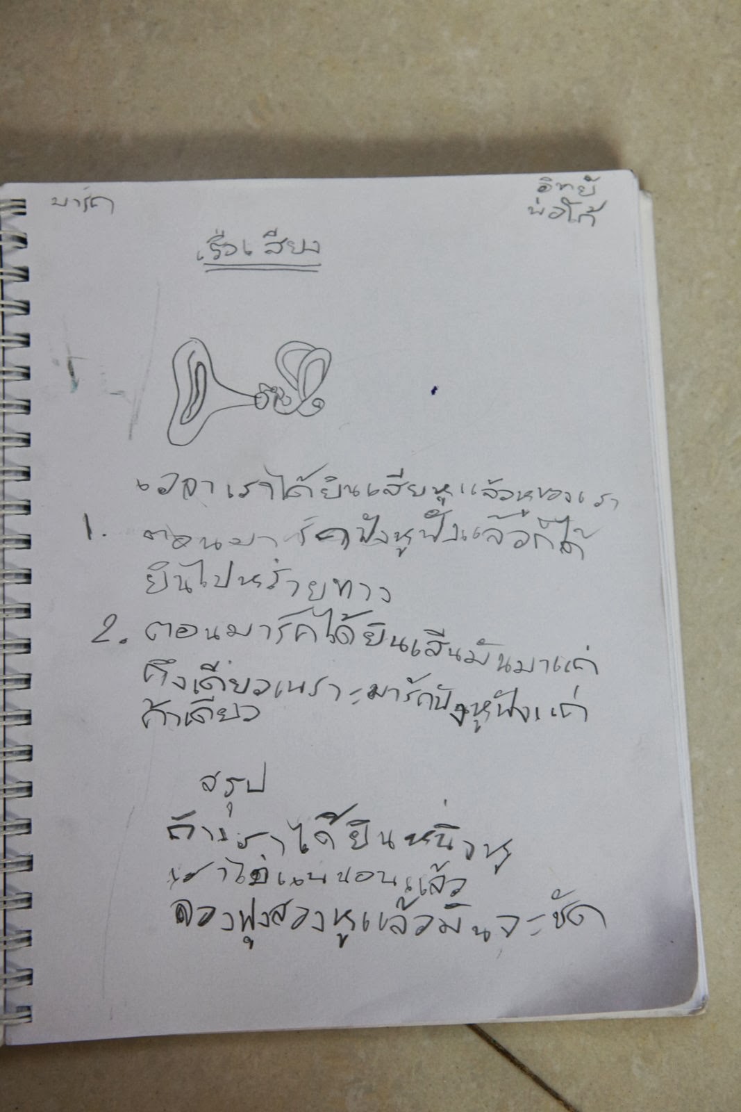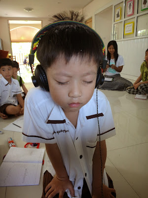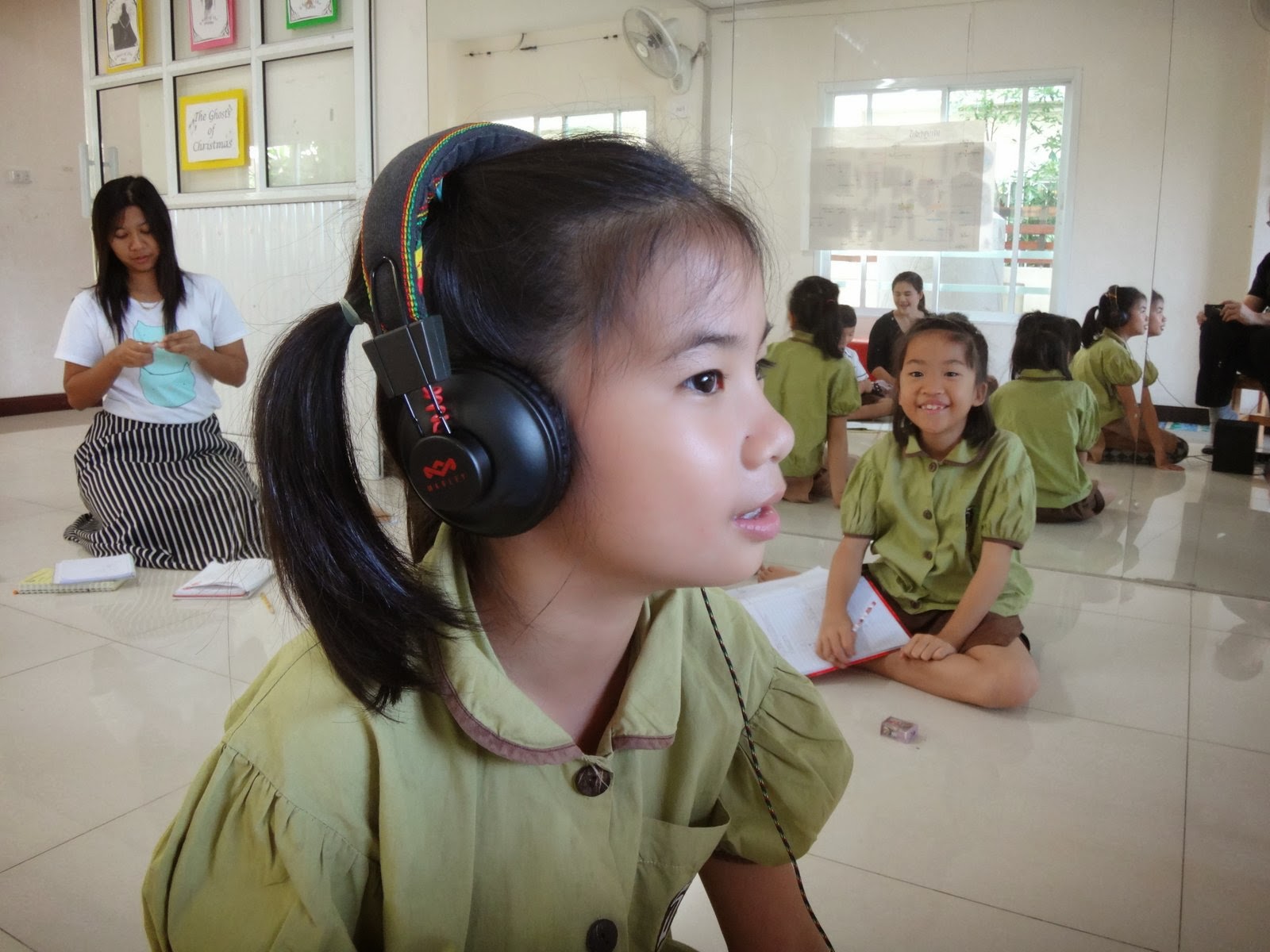 จากนั้นผมก็ให้เด็กใส่หูฟังแล้วฟังเสียงเขย่ากล่องไม้ขีดจากคลิปนี้ครับ: