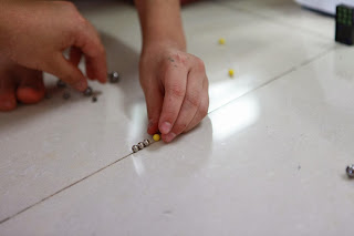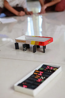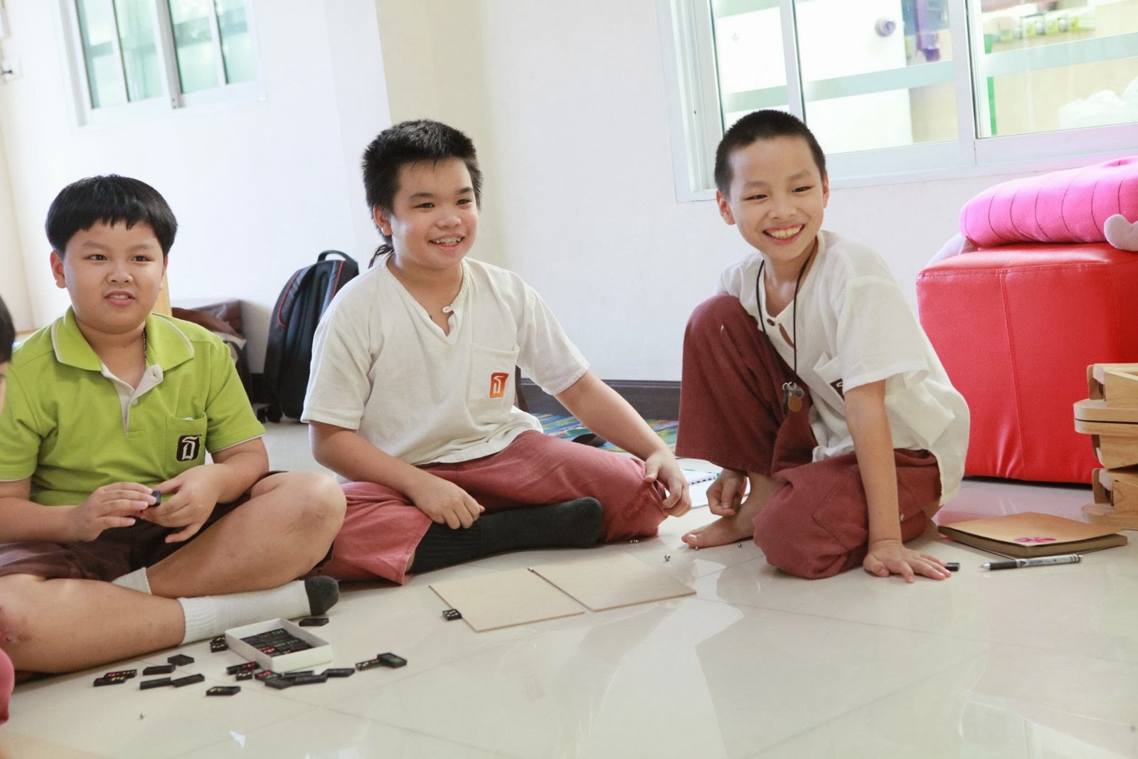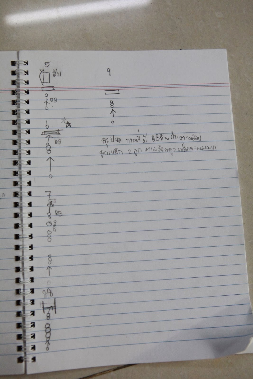 จากนั้นผมก็บอกวัตถุประสงค์ว่าเราจะดูกันว่าเรียงลูกกลมๆต่างๆอย่างไรแล้วจะวิ่งได้ไกลๆ และจะให้เล่นเกมยิงเป้าที่ทำจากชิ้นพลาสติกที่ใช่เล่นโดมิโนกัน