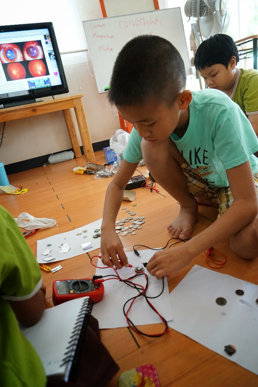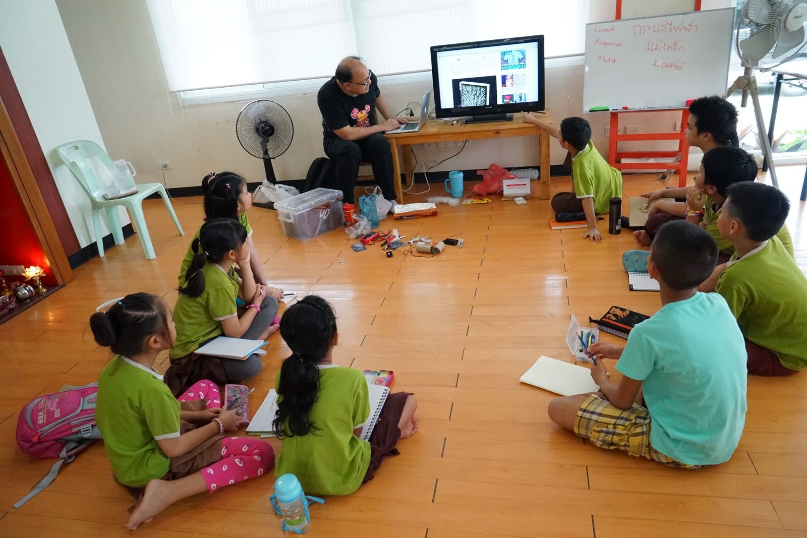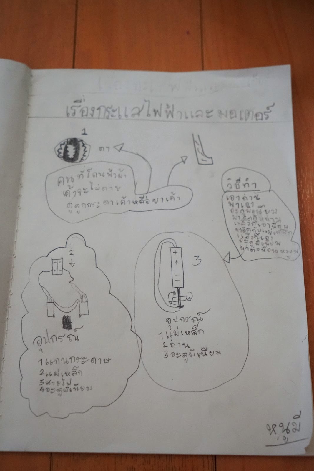 เด็กประถมสร้างมอเตอร์ เด็กอนุบาลดูถุงระเบิด" ส่วนเรื่องแม่เหล็กไฟฟ้าผมเขียนไว้ที่ "